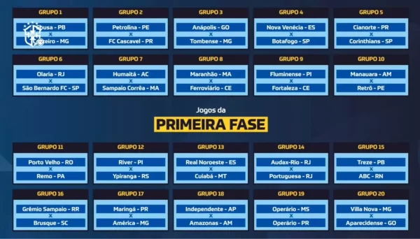 A equipe do Porto Velho ficou no grupo 11, na chave 6 e se passar pelo Remo deve enfrentar o vencedor do confronto entre River –PI e Ypiranga – RS. Já o Ji-Paraná recebe o Paysandu, as equipes estão no grupo 40 da chave 20 e quem passar desse confronto enfrenta o vencedor de Iguatu – CE e Juventude – RS.