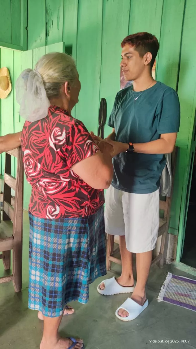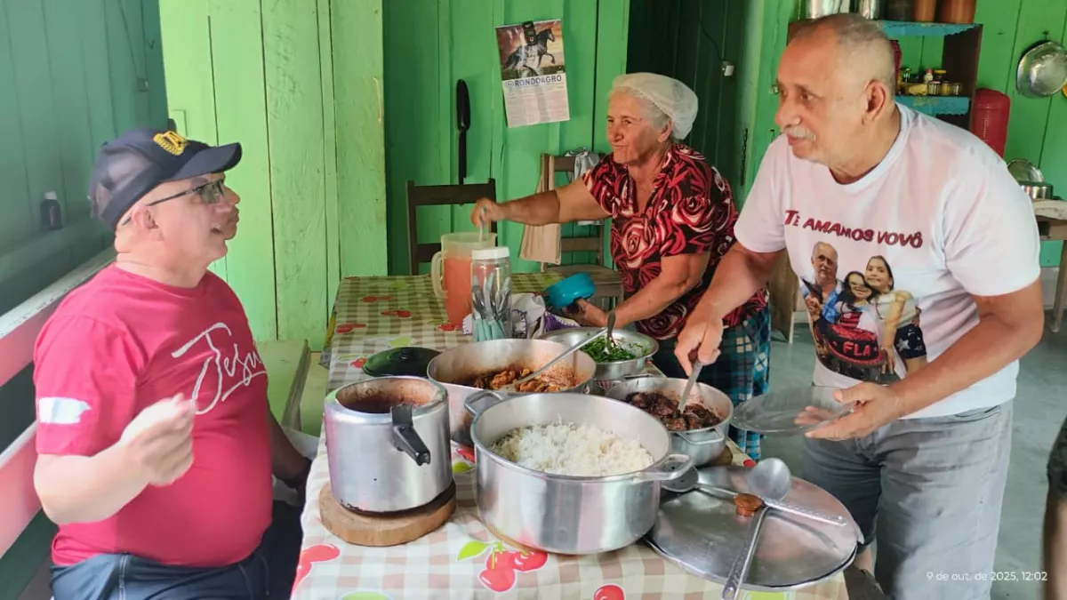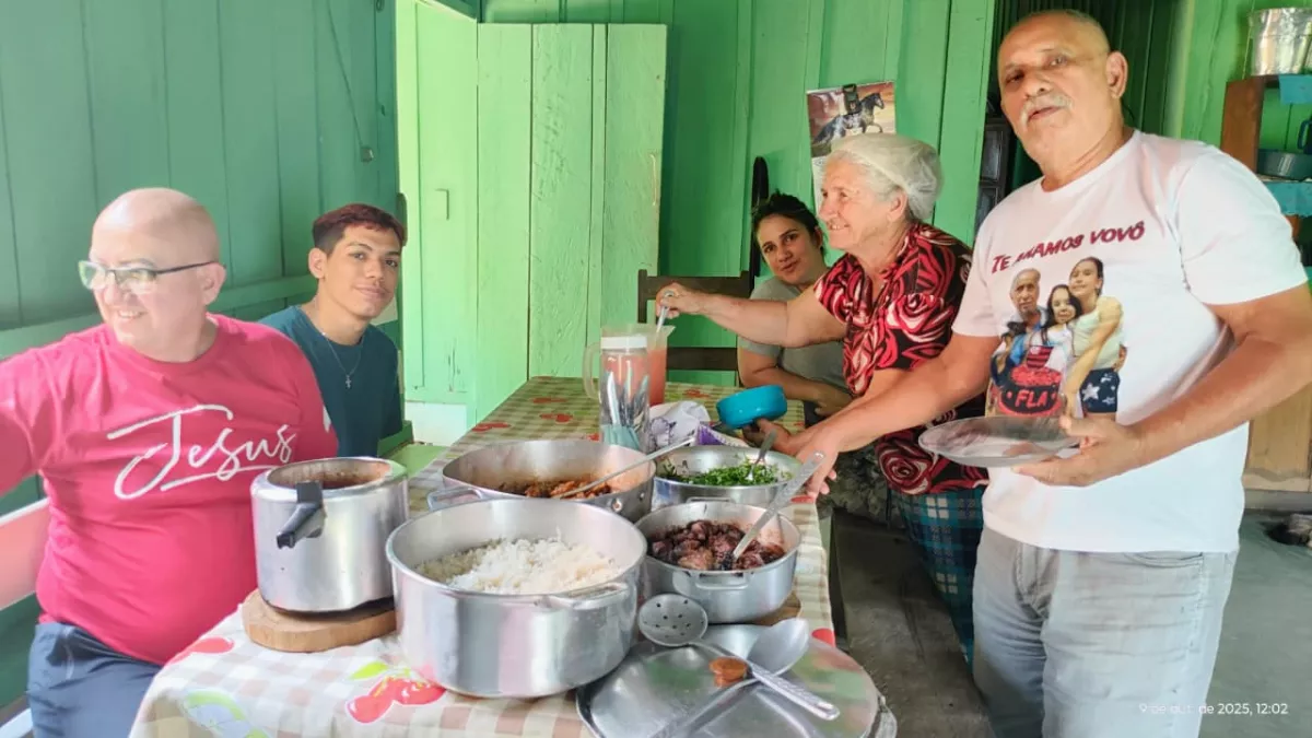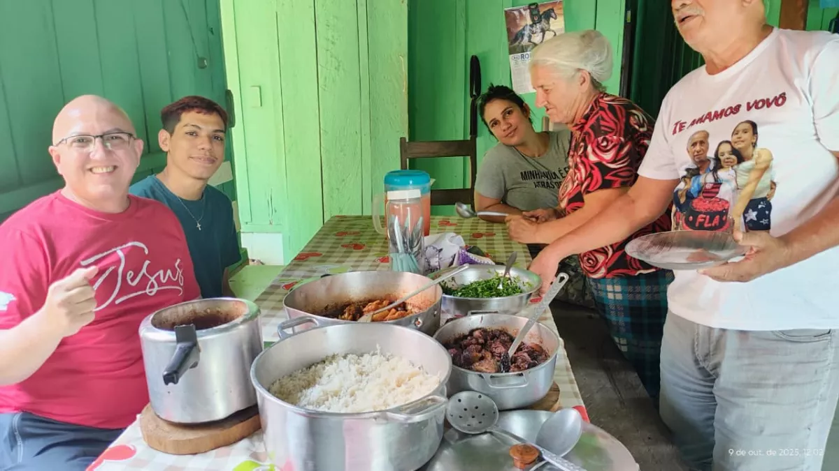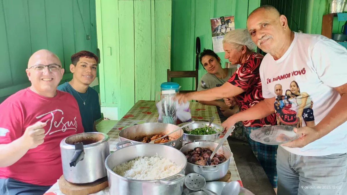A convite do pastor Andrei Monteiro e sua esposa Mariana Monteiro, eu e o jovem Pedro Gervásio, vindos de Poro Velho, fomos almoçar na casa da irmã em Cristo, Maria, uma senhora que já alcançou os seus 7.0, de idade, falante, extrovertida, comunicativa, com aquele vozeirão pujante de timbre mais aguçado, demostrando um invejável vigor físico, típico dos bravos italianos acostumados com a lida no campo ou na labuta do café.