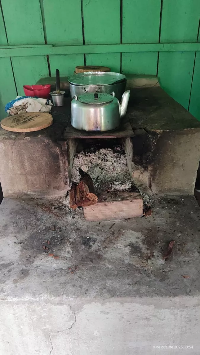 Não foi um almoço, e sim, um banquete, comida tradicional da roça: O velho fogão a lenha no canto da cozinha, que cozeu o arroz, feijão, carne, frango caipira, acompanhado de salada de couve, regado com o suco natural de acerola, sobremesa de doce de leite e melancia. Barriga cheia inspirou um dedinho de prosa, que quase vira a tarde toda.