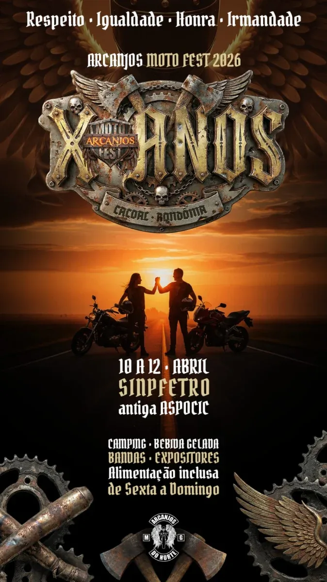 Representando o motoclubismo de Rondônia, os Arcanjos do Norte Moto Grupo, associação beneficente com sede em Cacoal, realizam a tradicional festa “Arcanjos Moto Fest” em comemoração aos seus 10 anos de entidade.