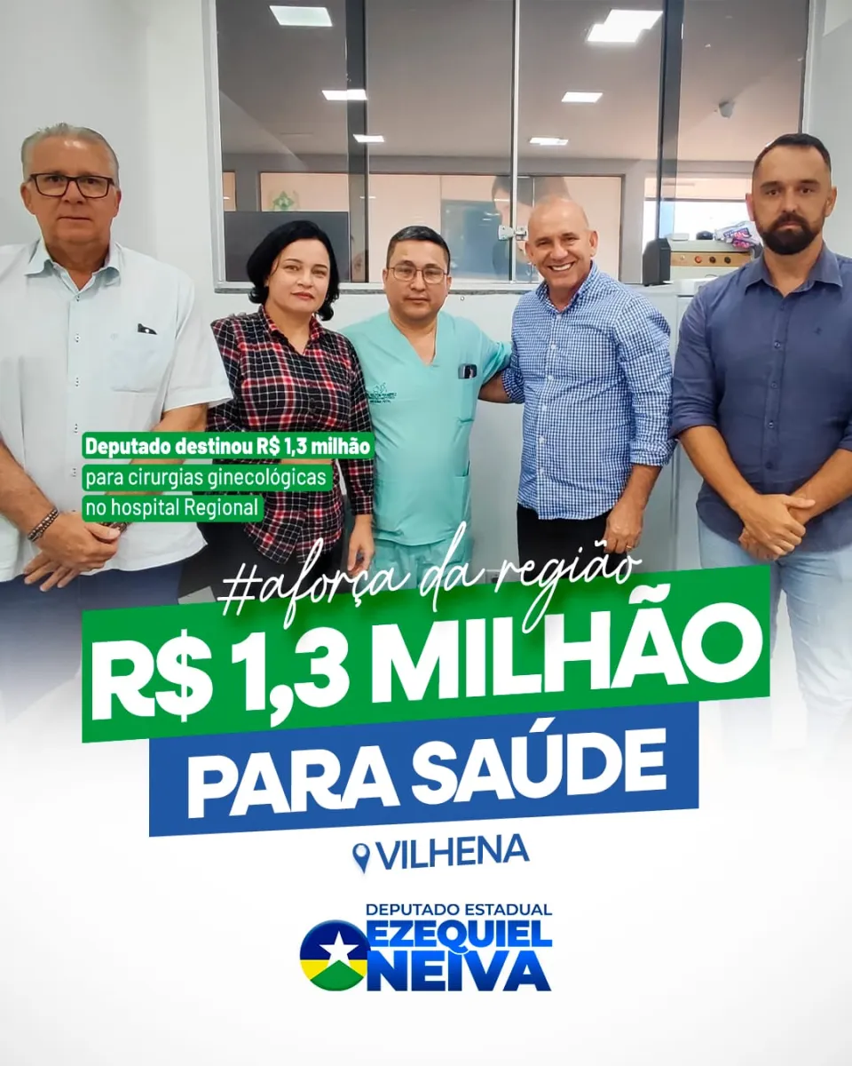 Tenho a satisfação de anunciar que a cidade de Vilhena será contemplada com um investimento de R$ 1,3 milhão para a realização de cirurgias ginecológicas no Hospital Regional. Essa ação, que atende à solicitação da vereadora Rose Batista da Saúde, visa reduzir a fila de espera e garantir que mais mulheres da cidade e região tenham acesso a procedimentos para o cuidado com a saúde.