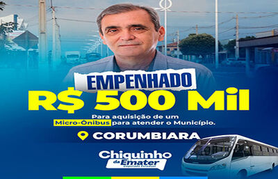 O prefeito Leandro Teixeira Vieira, o Leandro da Saúde “PSB”, de Corumbiara em nome da população, agradeceu ao deputado Estadual Chiquinho da Emater “PSB”, pelo recurso já empenhado na conta do município no valor de R$ 500,000,00 (quinhentos mil reais), para a aquisição de um Micro-ônibus.