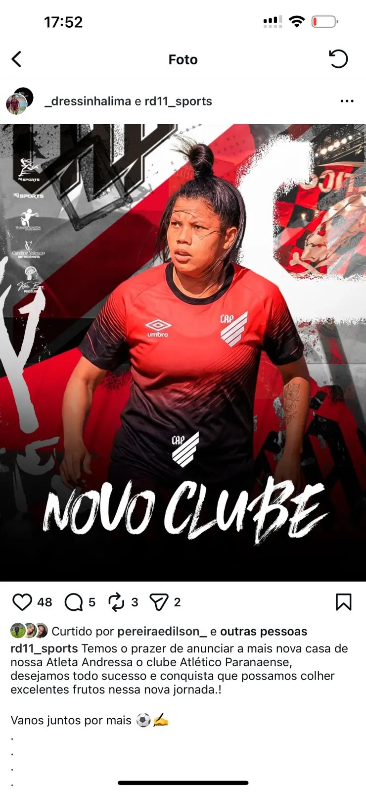 “Ver a Andressa seguir os passos da Camila e chegar a um clube como o Athletico mostra que o nosso futebol feminino é respeitado lá fora. O Tigre é uma verdadeira escola”, afirma Anderson Lins, presidente do Rolim de Moura.