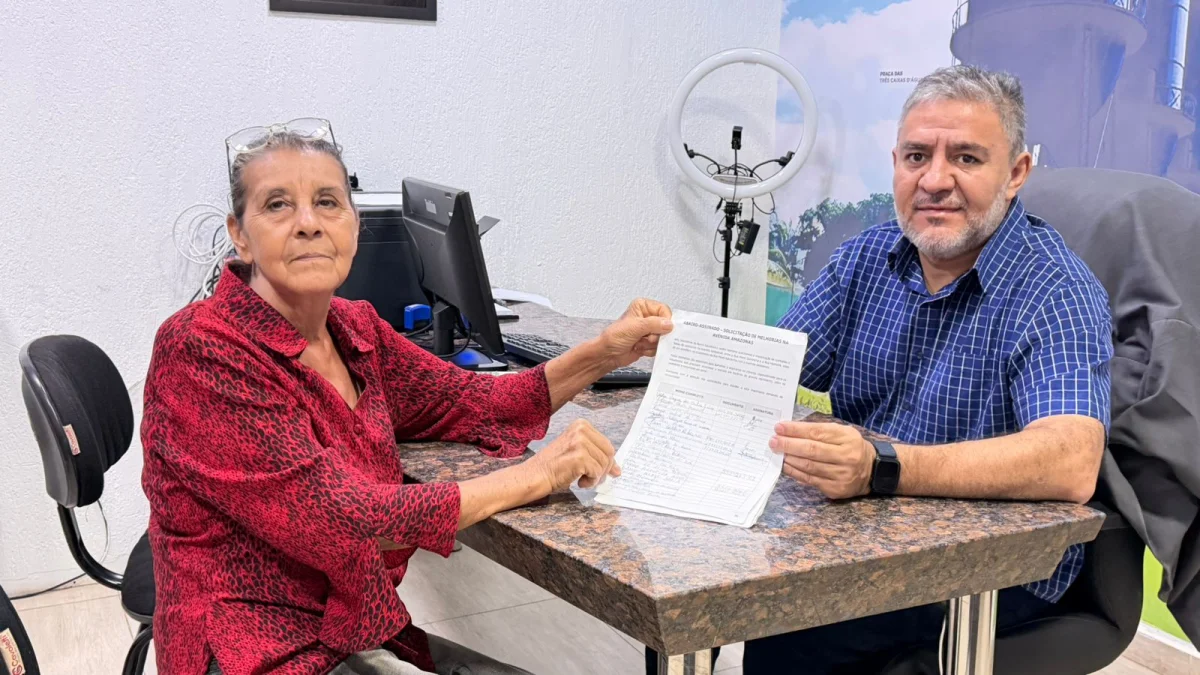 Líder comunitária Lúcia Vinhoto entrega abaixo-assinado ao vereador Everaldo Fogaça com pedido de melhorias na Avenida Amazonas