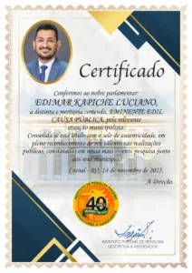 No dia 14 de novembro de 2025, a instituição — que celebra 40 anos de atuação em comunicação e pesquisa — promoveu a cerimônia “Personalidades Notáveis da Cidade”, ocasião em que Edimar Kapiche recebeu certificado e comenda de mérito pela sua “relevante atuação municipalista”. O documento legitima a percepção popular registrada na pesquisa e simboliza que seu trabalho já ultrapassou o campo da aprovação local, ganhando eco regional e institucional. É o tipo de sinal que costuma anteceder mudanças de escala política: quando a liderança municipal passa a ser reconhecida como ativo regional.