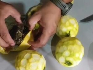 Foram encontradas 779 gramas de maconha, 105 gramas de cocaína e 1 kg de tabaco inseridos nas frutas.