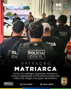 Na manhã desta sexta-feira (07), a Polícia Civil de Rondônia, por meio da 1ª Delegacia de Repressão a Entorpecentes (DENARC) de Porto Velho, deflagrou, na manhã desta sexta-feira, a fase ostensiva da Operação “Matriarca”.🤝 A ação contou com o apoio da CORE, DEPOM, DPE, DECCOR, DHPP, Polícia Federal, Polícia Civil do Amazonas, e Receita Federal.
