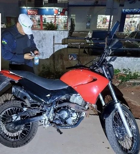 Em verificação posterior, constatou-se que a motocicleta utilizada possuía sinais de adulteração, com placa divergente da original, configurando crime previsto no artigo 311 do Código Penal. O veículo foi apreendido e apresentado à autoridade policial para as medidas cabíveis.