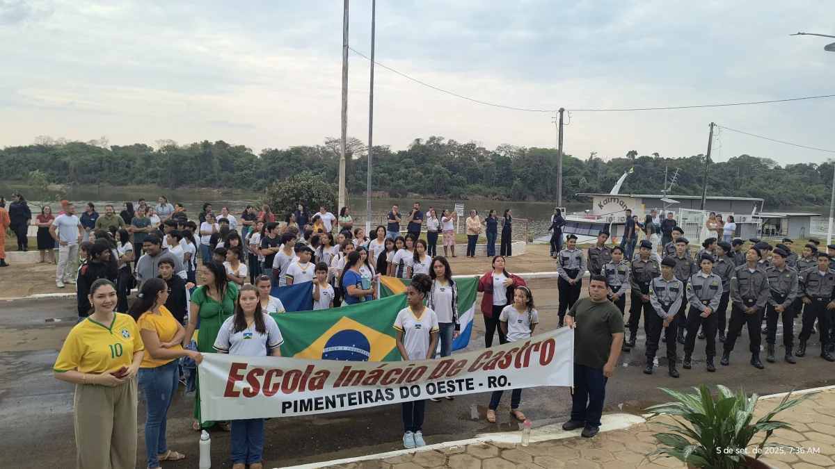 A Prefeitura de Pimenteiras do Oeste/RO; através da Secretaria Municipal de Educação-Semed, realizou na avenida Brasil em frente da prefeitura a comemoração de 7 de setembro, nesta sexta-feira 5 de setembro, com apresentações de alunos através de desfile cívico e eventos culturais das escolas municipais e estadual, onde estudantes de diferentes níveis de ensino exibem o patriotismo, a história do Brasil e talentos locais, por meio de danças, coreografias e apresentações temáticas sobre a independência do país e a cidadania.