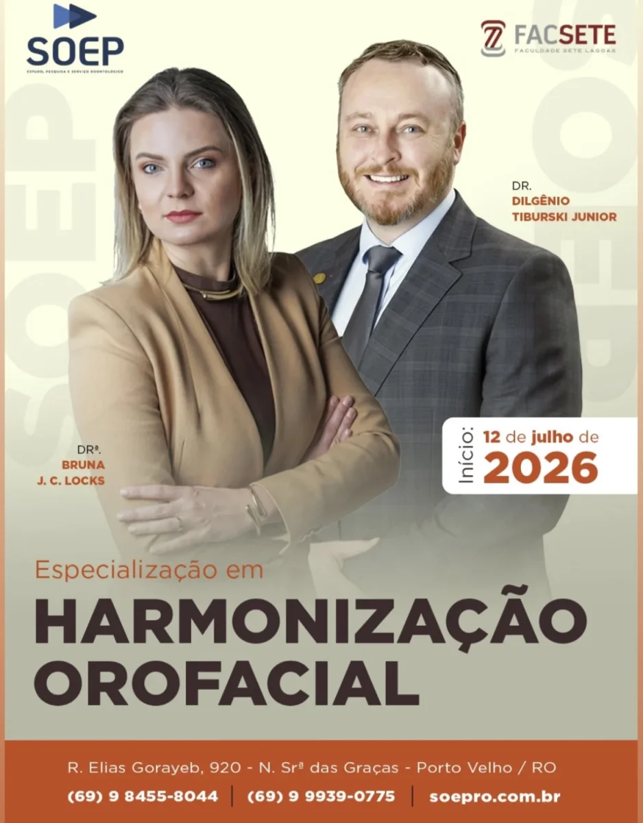 Especialização em Harmonização Orofacial – início em 12 de julho de 2026 (dividido em 14 módulos ao longo de encontros)