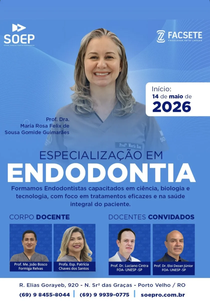 Especialização em Endodontia – início em 14 de maio de 2026 (20 meses)