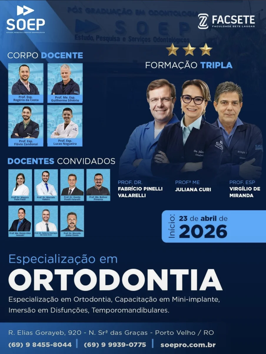 Especialização em Ortodontia – início em 23 de abril de 2026 (36 meses)