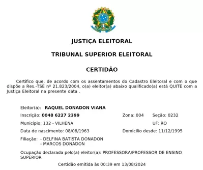 Legalmente foi aberto prazo para Raquel Donadon se manifestar, o que será feito imediatamente, tendo em vista que a professora federal atende a todos os requisitos da Lei Eleitoral. “Inclusive, tenho minha Quitação Eleitoral emitida pelo Tribunal Superior Eleitoral. Vamos fazer essa campanha e trazer à tona as verdades que Vilhena precisa para se libertar de projetos individuais de poder”, completa Donadon.